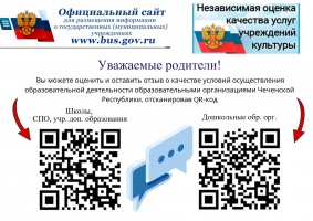 Уважаемые родители! На портале bus.gov.ru Вы можете оценить и оставить отзыв о качетсве условий осуществления образовательной деятельности образовательными организациями Чеченской Республики