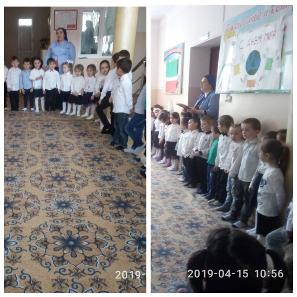 В каждой возрастной группе были организованы музыкальные развлечения "Даймохк ", "Дай баьхна латта""Дружба". Детям прочитали небольшой рассказ о голубе мира, которого изображают на баннерах, все с увлечением послушали рассказ, после чего отгадывали загадки о дружбе, друзьях и мира на земле.